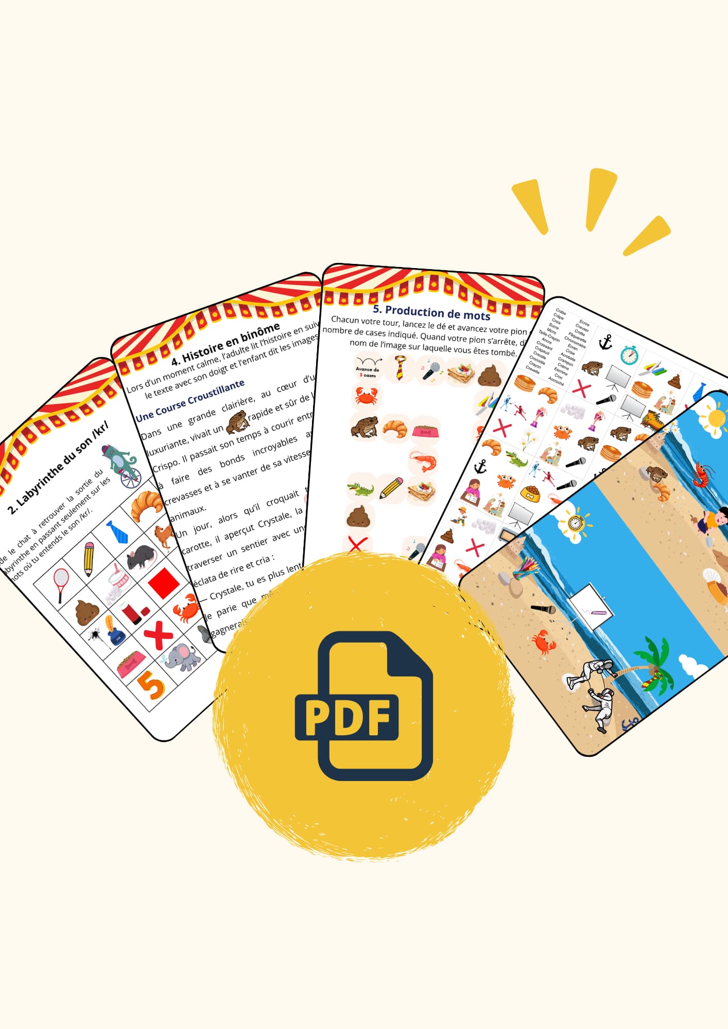 Travaillez le groupe de consonnes CR avec un e-book PDF de 30 pages à imprimer chez vous, inspiré de la pratique orthophonique.
