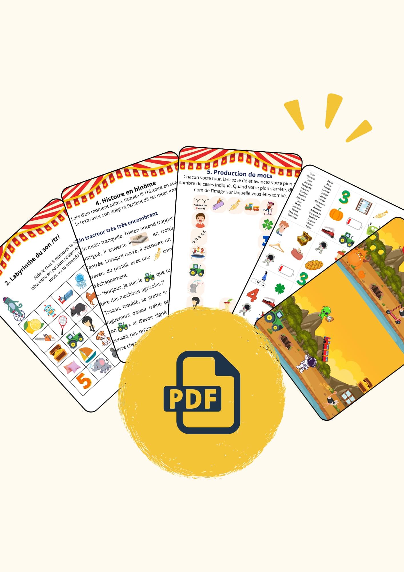 Travaillez l’articulation du groupe consonantique TR de votre enfant avec un e-book PDF de 30 pages à imprimer chez vous, inspiré de la pratique orthophonique.